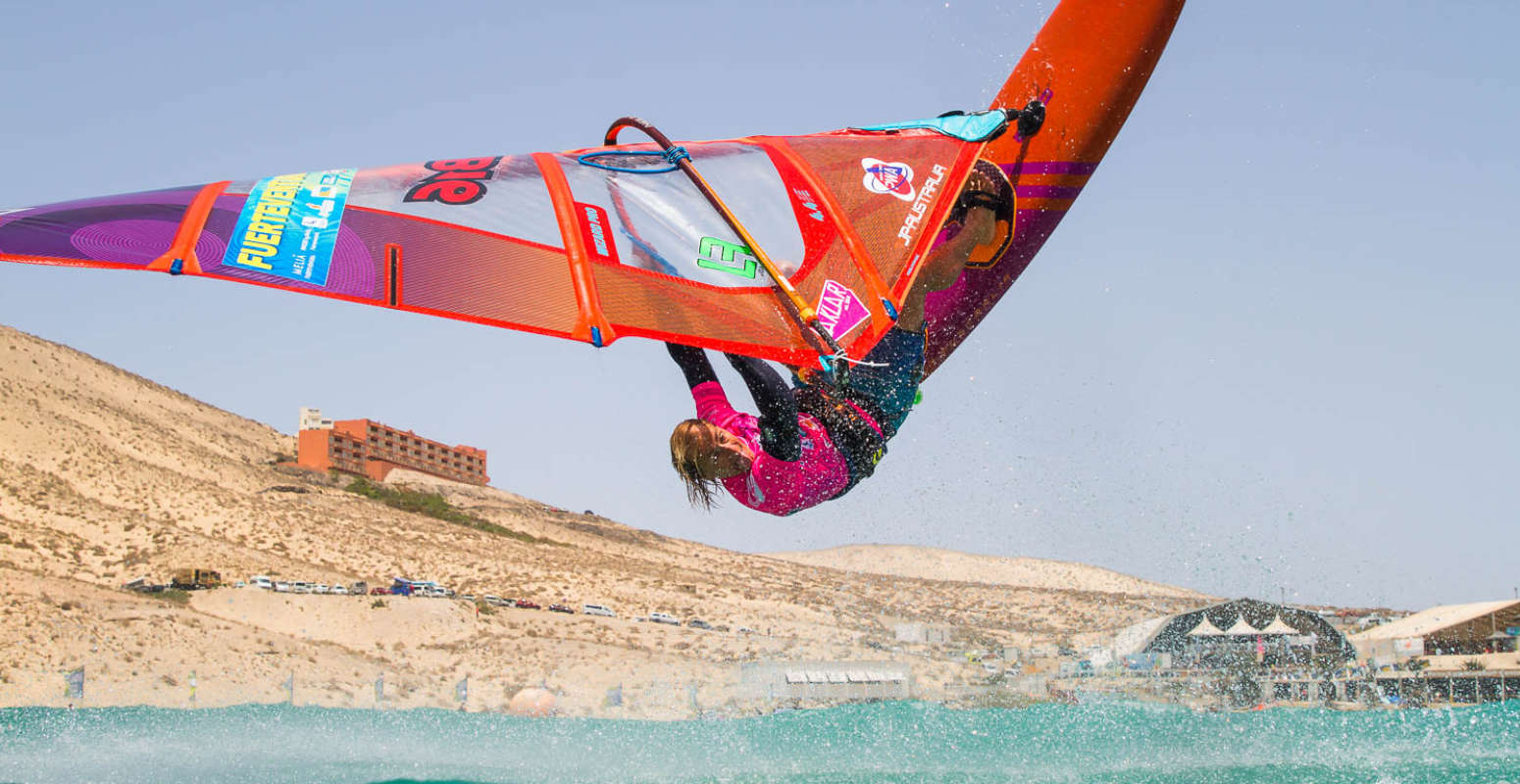 The contortionists of the windsurfing world served up an unbelievable spectacle on the first day of Freestyle at the 2025 Fuerteventura PWA Grand Slam with upsets, epic duels and huge moves being thrown down throughout the day. After an almost non-stop seven hours of competition Sarah-Quita Offringa (Starboard / NeilPryde / Maui Ultra Fins) and Yentel Caers (JP / NeilPryde) head up the event rankings after claiming victories in the Single Eliminations.Women’s Maaike Huvermann (Severne / Severne Sails / Maui Ultra Fins) made her intentions pretty clear before the start of the event that she wanted to challenge Sarah-Quita Offringa for the coveted top spot on the podium and she certainly wasn’t lying as she and Offringa put on, not only the best ever women’s Freestyle final in Fuerte, but quite possibly the best women’s Freestyle final ever on the World Tour, as both women pushed each other to raise the bar once again.